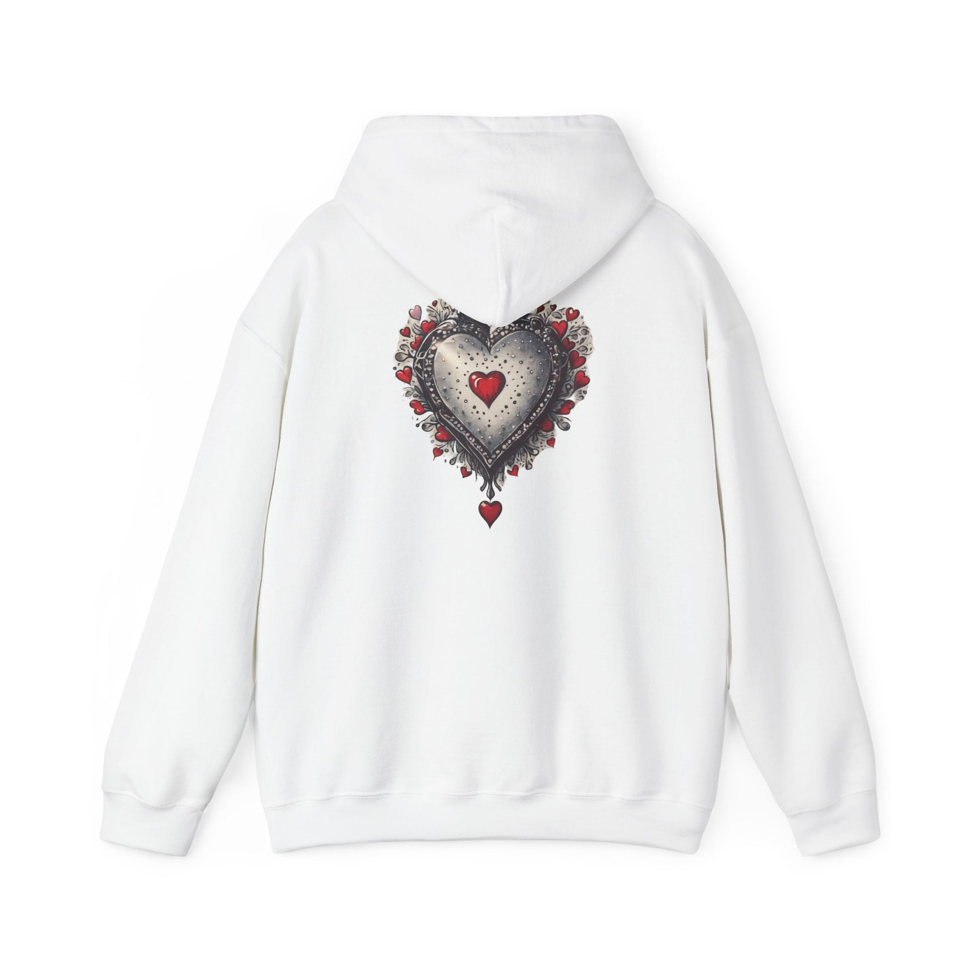 This hoodie carries a quiet, handcrafted feeling — a textured heart surrounded by tiny roses, slightly distressed edges and a single dangling charm. It settles around your shoulders like a warm note from someone who knows you: tender, a little bittersweet, and meant to be worn close. The soft, mid-weight fabric and roomy pouch pocket make it easy to reach for on chilly walks, late-night coffee runs, and slow evenings at home. Subtle front and back artwork keeps the design intimate but visible; embroidery options add tactile depth for a more artisanal finish. Put it on when you want comfort that feels personal and imagery that speaks in small, heartfelt details.